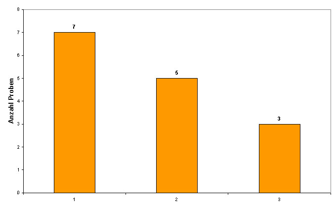 In Abbildung 2 ist die Anzahl an Mehrfachrückständen in den untersuchten Möhrenproben aufgeführt. Maximal wurden drei Wirkstoffe – in drei Fällen – gleichzeitig in einer Probe bestimmt; davon wurden in einer Probe die Wirkstoffe nur im Spurenbereich nachgewiesen.