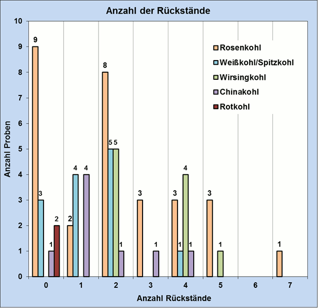 In Abbildung 2 sind die Ergebnisse der Rückstandsuntersuchungen dargestellt: