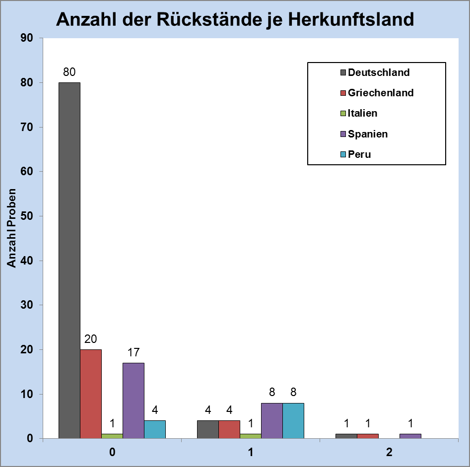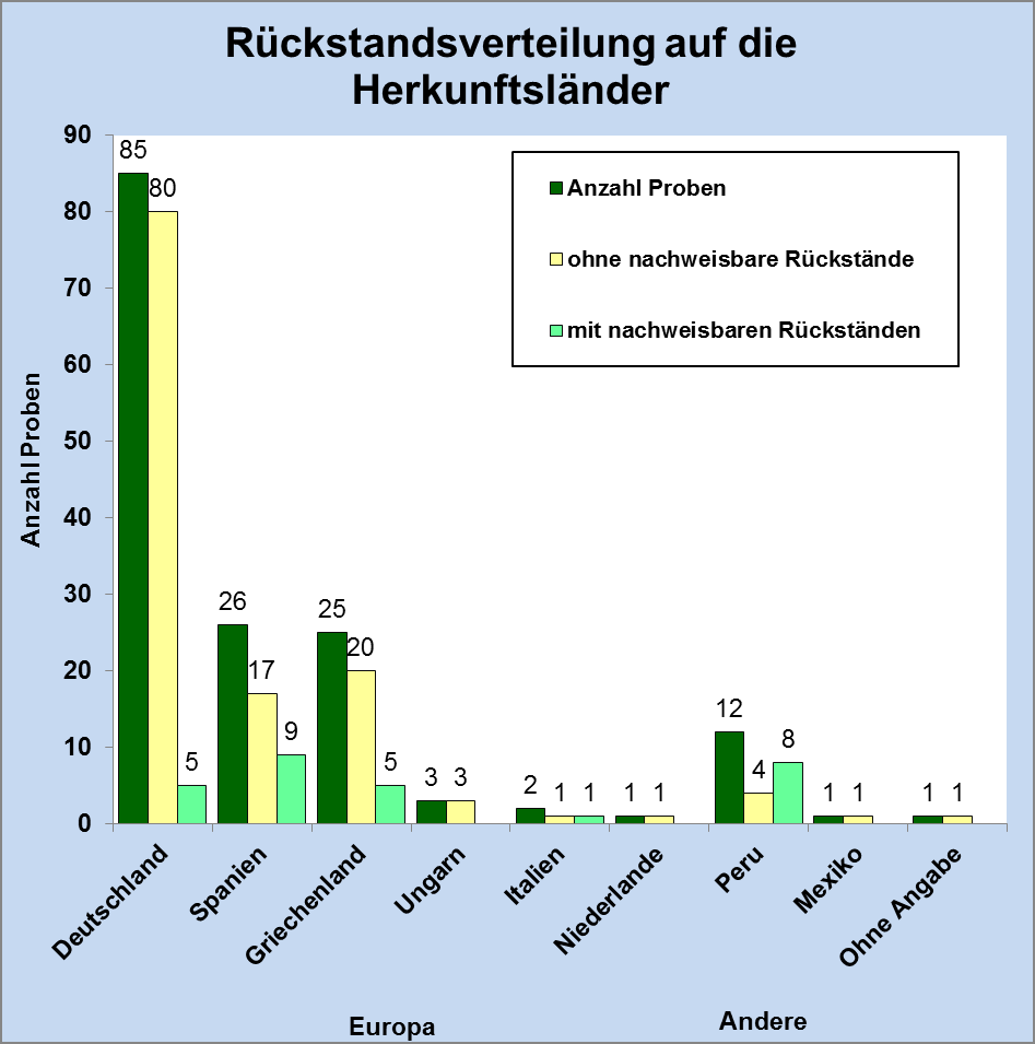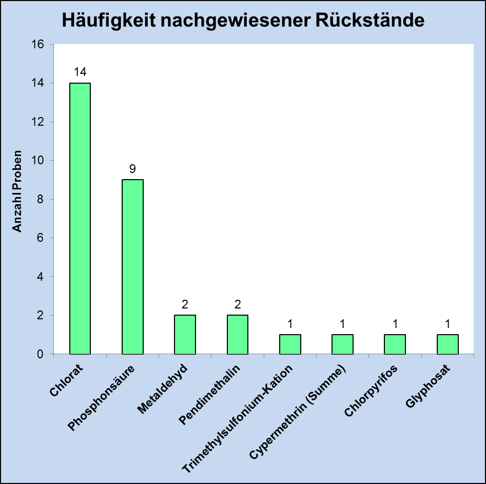 Die Ergebnisse bestätigen die Untersuchungen aus den Vorjahren; denn auch in den letzten Jahren wurden nur vereinzelt Rückstände von Pflanzenschutzmitteln festgestellt.