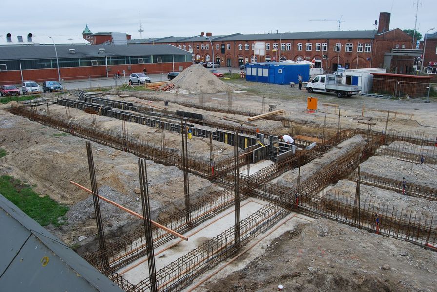 Die Heizung des Altbaus wurde entfernt, die neue Heizungsanlage wird eingebaut. Die Warmwasserversorgung im Haus wird währenddessen über einen installierten Boiler sichergestellt. Container werden zum 1. September aufgestellt und die Vorbereitungen für die interne Laborverlagerung laufen. Unter anderem leiht das LAVES-Futtermittelinstitut Stade dem Cuxhavener Institut eine Sicherheitswerkbank. Mit Hochdruck wird am Fundament gebaut. Der Baukran steht.
