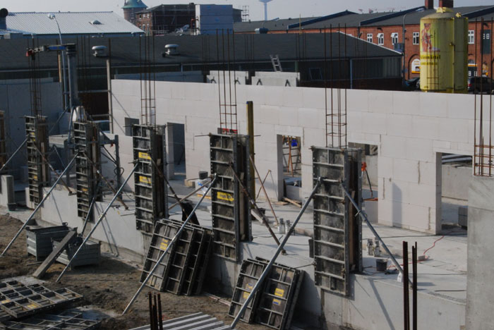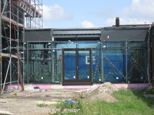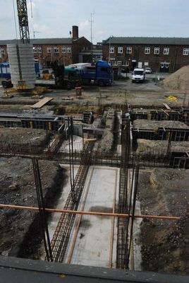 Der Rohbau des Erdgeschosses mit den Laborräumen entsteht (Fenster, Türen etc.).