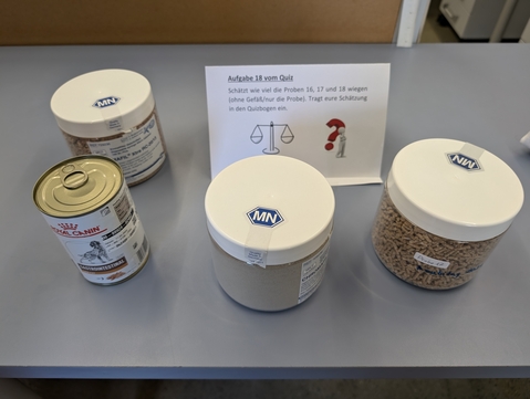 Ein Quiz rund um die Spezialität des Hauses durfte natürlich auch nicht fehlen. Die Auszubildenden schätzen, raten und messen verschiedene Futtermittel.