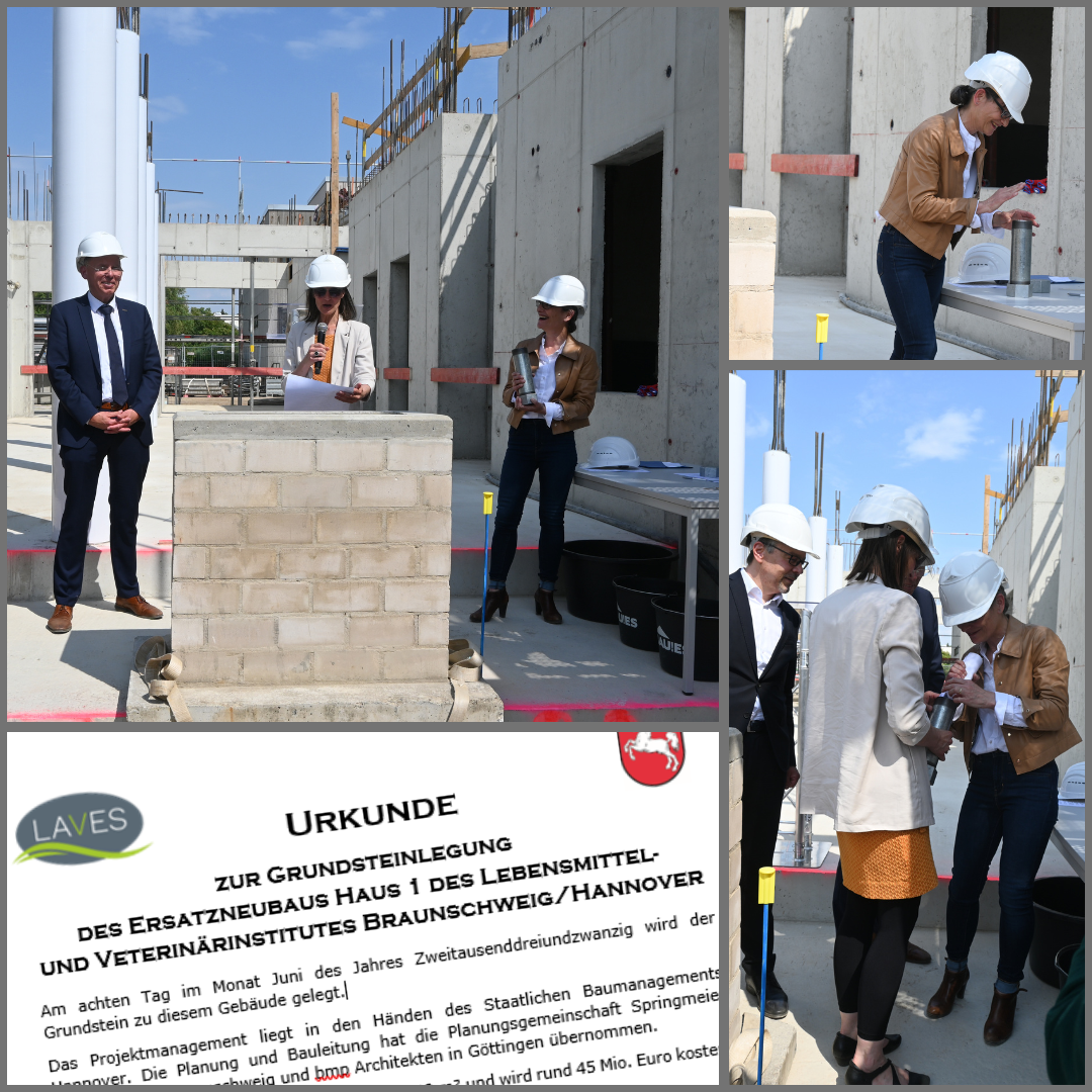 Staudte wies in ihrem Grußwort auf die Bedeutung der Untersuchungseinrichtungen für den gesundheitlichen Verbraucherschutz in Niedersachsen hin. „Die Landesregierung investiert rund 45 Millionen Euro in das neue Gebäude des Lebensmittel- und Veterinärinstituts, dessen Grundstein heute gelegt wird,“ betonte die Ministerin. „Das ist gut angelegtes Geld, sowohl für die Gesundheit der Verbraucherinnen und Verbraucher als auch für das Vertrauen in staatliche Institutionen.“
