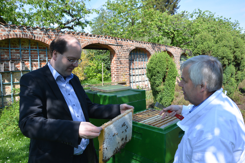 Hannover/Celle. Zu einem erstmaligen Informationsbesuch hat das Institut für Bienenkunde (IB) Celle des Niedersächsischen Landesamtes für Verbraucherschutz und Lebensmittelsicherheit (LAVES) heute Niedersachsens Landwirtschaftsminister Christian Meyer empfangen. Minister Meyer: „80 Prozent der Kulturpflanzen sind auf die Bestäubungsleistung der Bienen angewiesen. Der volkswirtschaftliche Wert der Bestäubungsleistung wird allein in Deutschland auf etwa zwei Milliarden Euro jährlich geschätzt. Die Biene ist das wichtigste Nutztier in Niedersachsen und von hoher Bedeutung für den Ertrag und die Vielfalt an gesunden Lebensmitteln.“