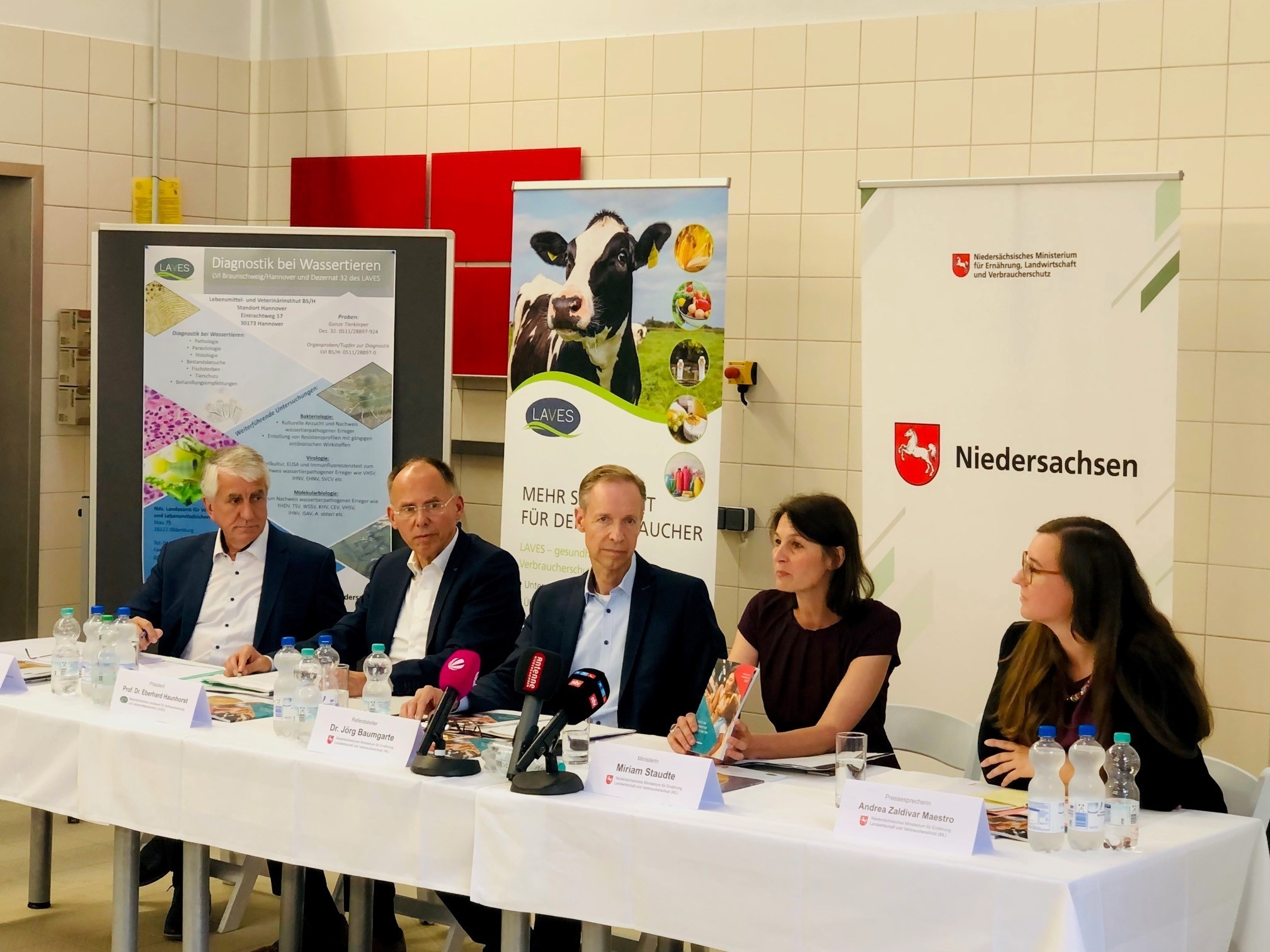 Was steckt in der Milch oder veganen Milchersatzprodukten? Wie sieht es mit der Umweltradioaktivität bei Wildfleisch aus? Liegt eine Tierseuche oder Zoonose bei einem Tier vor? Wurde ein Nutz- oder Haustier misshandelt? Diese und andere Fragestellungen werden üblicherweise von den Veterinärverwaltungen im Land Niedersachsen beantwortet. Im Niedersächsischen Landesamt für Verbraucherschutz und Lebensmittelsicherheit (LAVES) wurde heute (25. August 2023) der gemeinsame Verbraucherschutzbericht 2022 und der Tätigkeitsbericht des LAVES von Verbraucherschutzministerin Miriam Staudte, dem Hauptgeschäftsführer des Niedersächsischen Landkreistages (NLT) Prof. Dr. Hubert Meyer und dem LAVES-Präsident Prof. Dr. Eberhard Haunhorst vorgestellt.
