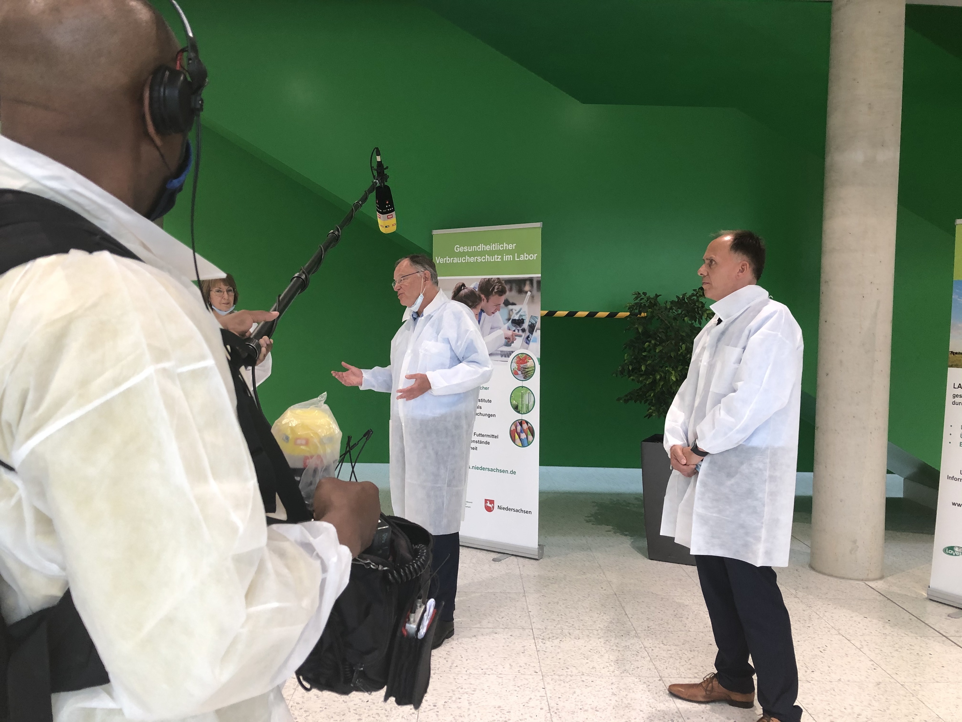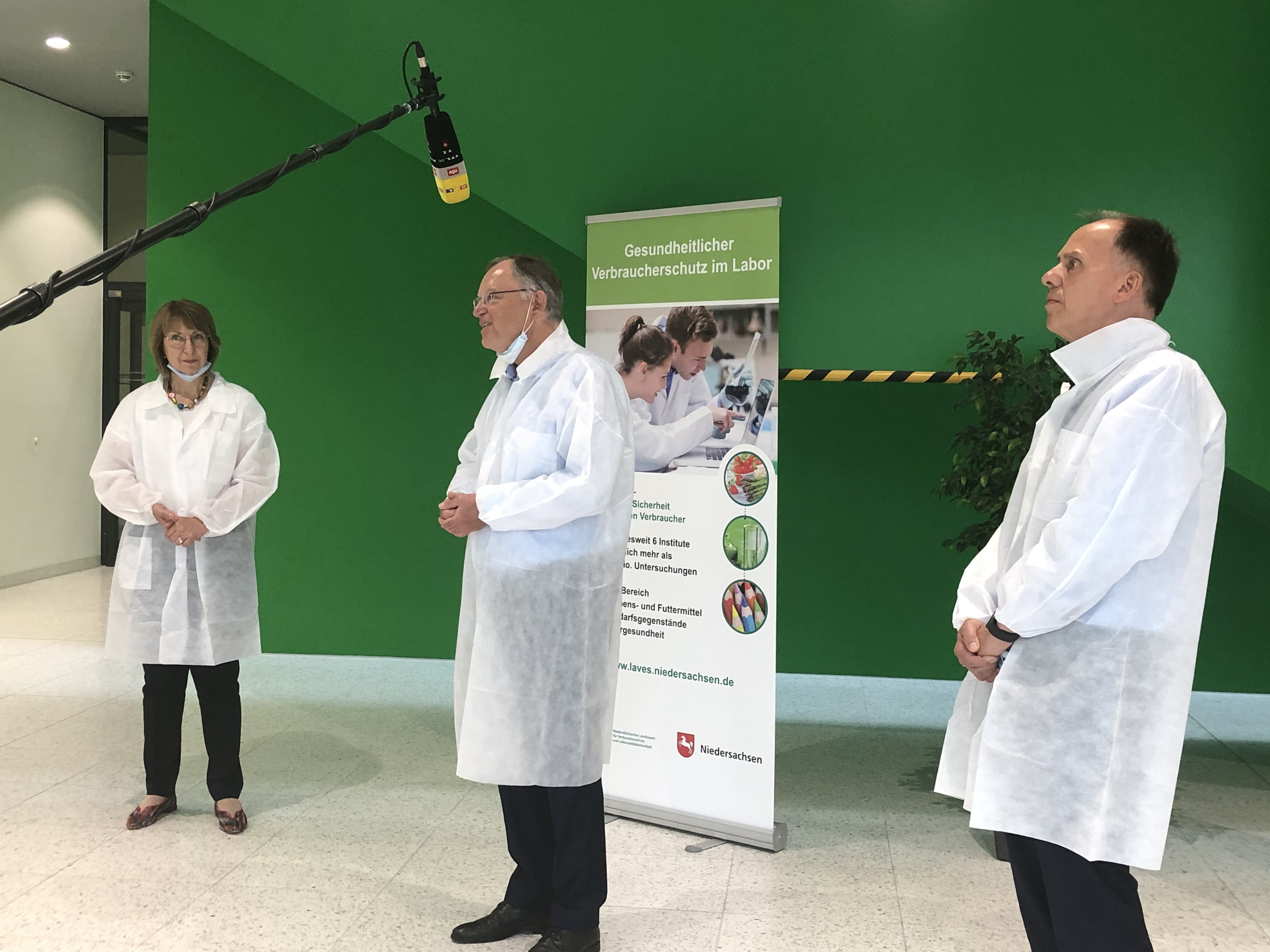 Ministerpräsident Stephan Weil hat sich heute (18. Juni) im LAVES über das hohe Engagement der Mitarbeiterinnen und Mitarbeiter sowie über die Laborabläufe informiert. In der Hochphase der Untersuchungen waren dafür mehr als 100 Mitarbeiter an sieben Tage die Woche im Einsatz. LAVES Präsident Prof. Dr. Eberhard Haunhorst, Vizepräsidentin Barbara Woltmann und Institutsleiter Jörg Lay begleiteten ihn bei einem Rundgang durch die Labore.