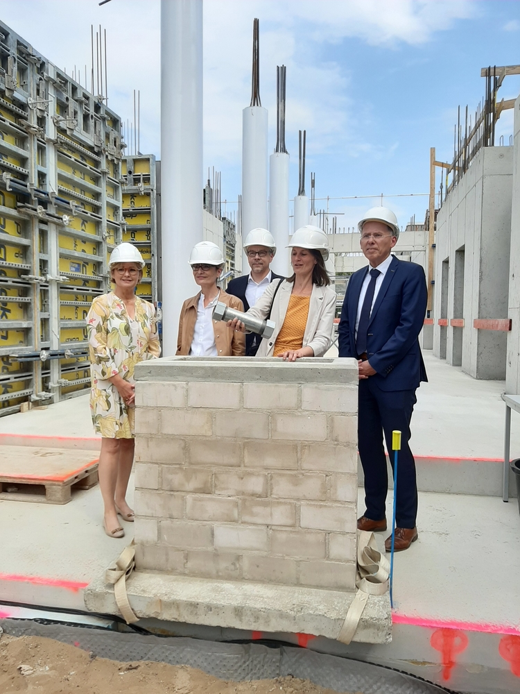 Nähere Informationen zum LAVES-Lebensmittel- und Veterinärinstitut Braunschweig/Hannover finden Sie im Internet unterwww.laves.niedersachsen.de.Der erste Grundstein ist gelegt und die Zeitkapsel wird eingemauert. Auf dem Bild sind zu sehen von rechts: Prof. Dr. Eberhard Haunhorst, Präsident des LAVES; Verbraucherschutzministerin Miriam Staudte; Alexander Schaub, Leiter des Staatlichen Baumanagement Hannover; Dr. Gabriele Guder, Leiterin des LVI Braunschweig/Hannover; Anke Kaphammel, Bürgermeisterin Stadt Braunschweig.