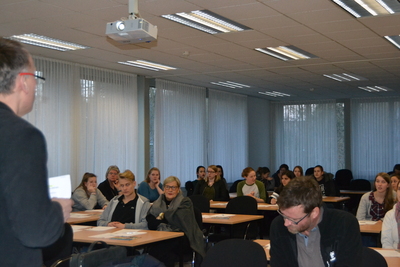 Den Schülerinnen und Schülern im Alter von ca. 15-16 Jahren aus Gymnasien und Gesamtschulen aus Oldenburg und dem Umland (und auch einigen Eltern), wurden in kurzen Referaten die unterschiedlichen Berufsmöglichkeiten für Tierärzte aufgezeigt. Sie erfuhren Wissenswertes über das Studium der Tiermedizin und die Voraussetzungen für den Studiengang durch einen angehenden Studenten der Veterinärmedizin. Auch berichtete eine Tierärztin aus einer Kleintierpraxis über den beruflichen Arbeitsalltag. Mehr erfahren konnten die Teilnehmer außerdem über die Freuden, aber auch oftmals schwierigen Bedingungen für einen Großtierarzt im Oldenburger Umland, sowie die Aufgaben eines Amtstierarztes des LAVES aus dem Bereich Lebensmittelüberwachung und die täglichen Herausforderungen einer Fachtierärztin für Mikrobiologie der Lebensmittel aus dem Lebensmittel- und Veterinärinstitut in Oldenburg.