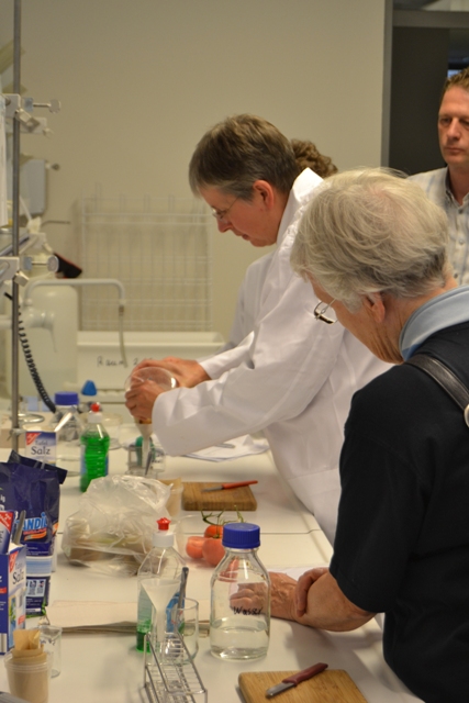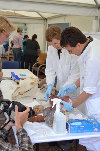 Viele hundert Besucher nutzten die Gelegenheit sich über die Arbeit des LAVES zu informieren, mit den Experten ins Gespräch zu kommen und bei spannenden Aktionen zuzuschauen oder selbst Hand anzulegen. So konnten die Besucher feststellen, wie viel Blei oder Nickel ihr Ehering enthält oder ob sie den Unterschied zwischen echtem Käse und Analogkäse schmecken können. Aus Kiwis oder Tomaten konnte die DNA extrahiert werden oder man versuchte sich als Mineralwasserexperte. Für den Nager zu Hause ließ sich ein passendes Futter mischen oder eine Kerze aus echtem Bienenwachs drehen. Wer lieber nur zuschauen wollte konnte sich bei den Pathologen zeigen lassen, wie man am Rinderhirn BSE diagnostiziert, welche Untersuchungen bei der Fleischanalytik notwendig sind oder woran man erkennt, dass der Fisch frisch ist.