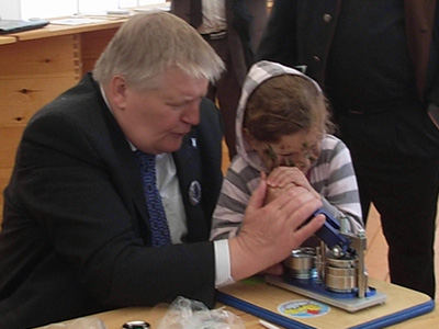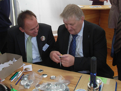 Landwirtschaftsminister Ehlen und LAVES-Präsident Prof. Dr. Haunhorst suchen sich ein Button-Motiv aus