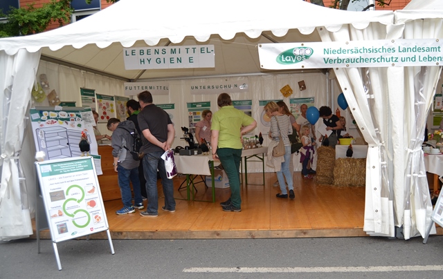 Das LAVES war zum sechsten Mal mit einem Informationsstand auf dem Tag der Niedersachsen vertreten und präsentierte auch seine weiteren, vielfältigen Aufgaben im gesundheitlichen Verbraucherschutz. In Niedersachsen ist das LAVES landesweit zuständig für die Untersuchung und Beurteilung von amtlichen Proben aus allen Prozess- und Produktionsstufen der Lebensmittelkette. Zum LAVES gehören sechs Untersuchungseinrichtungen: die Lebensmittel- und Veterinärinstitute Oldenburg und Braunschweig/Hannover, das Institut für Fische und Fischereierzeugnisse Cuxhaven, das Institut für Bedarfsgegenstände Lüneburg, das Futtermittelinstitut Stade und das Institut für Bienenkunde Celle. Darüber hinaus erfüllt das LAVES mit seinen fünf Fachabteilungen unmittelbare Vollzugsaufgaben in den Bereichen Futtermittel- und Tierarzneimittelkontrolle, Ökologischer Landbau sowie Marktüberwachung und berät die kommunalen Behörden in Fragen der Lebensmittelüberwachung, der Tiergesundheit, der Schädlingsbekämpfung und des Tierschutzes.