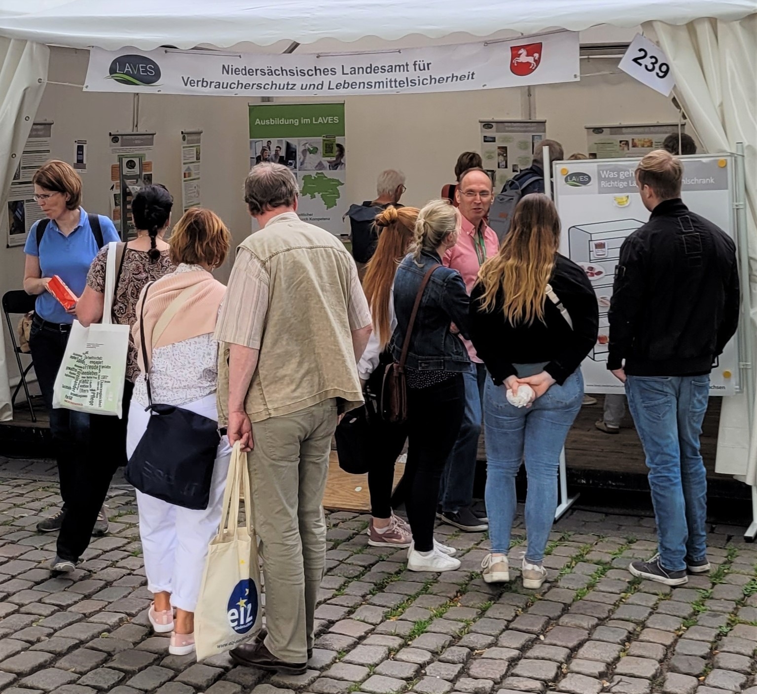 Viele Gäste nutzen die Gunst der Stunde am Maschsee, ihre persönlichen Fragen zu stellen. Das Themenspektrum war vielfältig und führte zu einem regen Austausch. Die Mitarbeiterinnen und Mitarbeiter des LAVES standen drei Tage lang Rede und Antwort und konnten dabei auch ihre Arbeit im LAVES vorstellen. Interessierte Schülerinnen und Schüler bekamen Informationen zu den unterschiedlichen Berufsfeldern und Ausbildungsmöglichkeiten im LAVES.