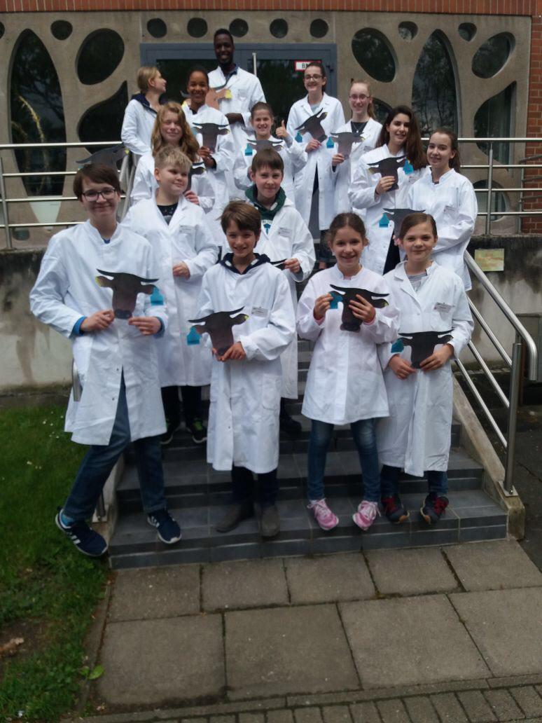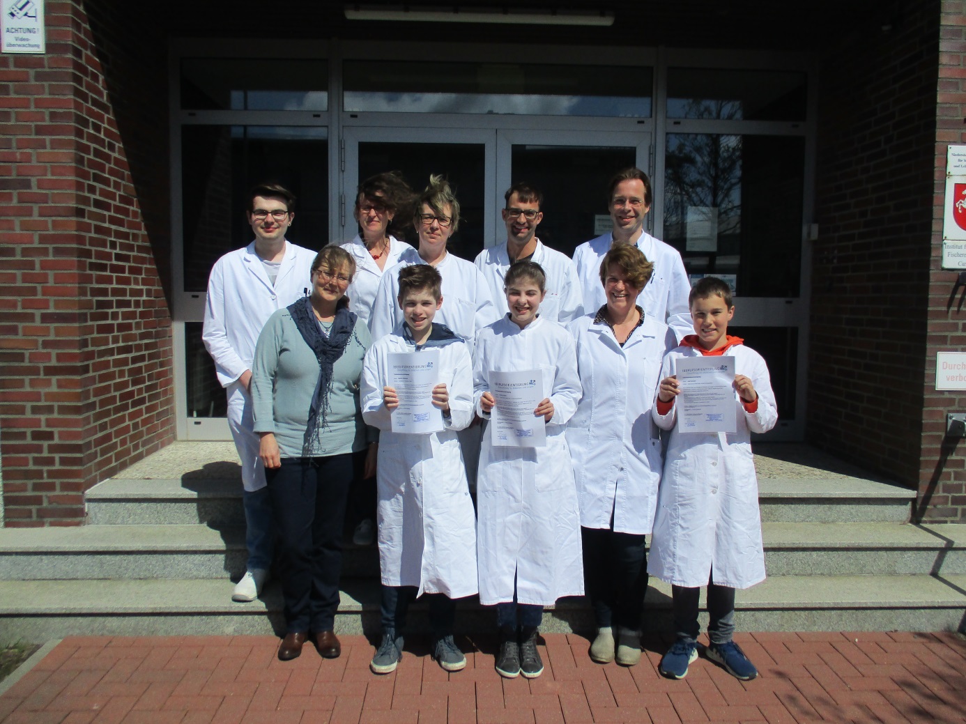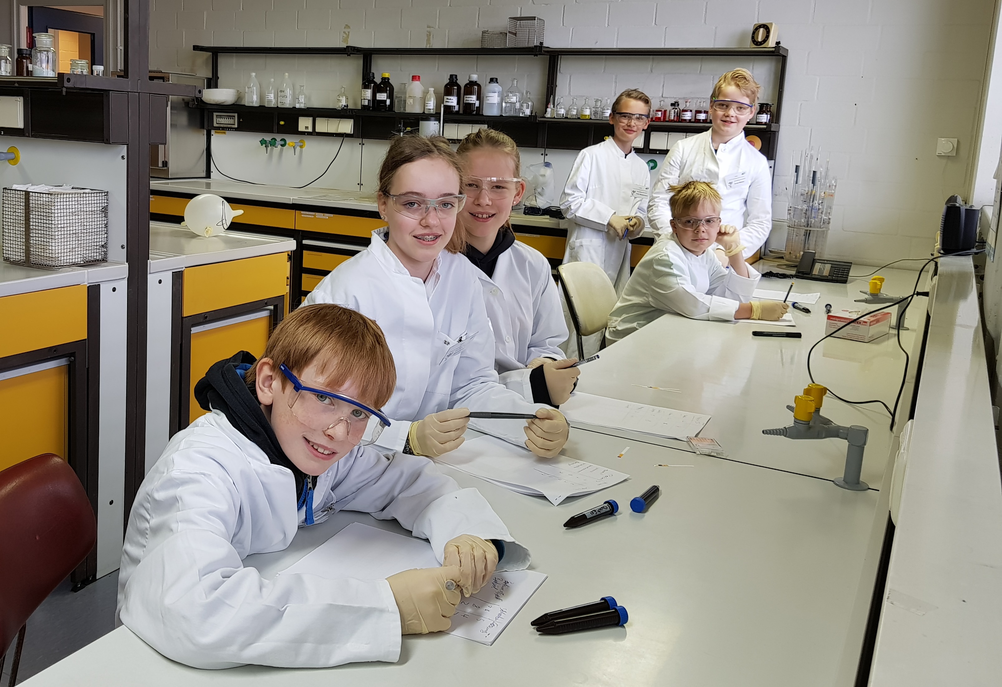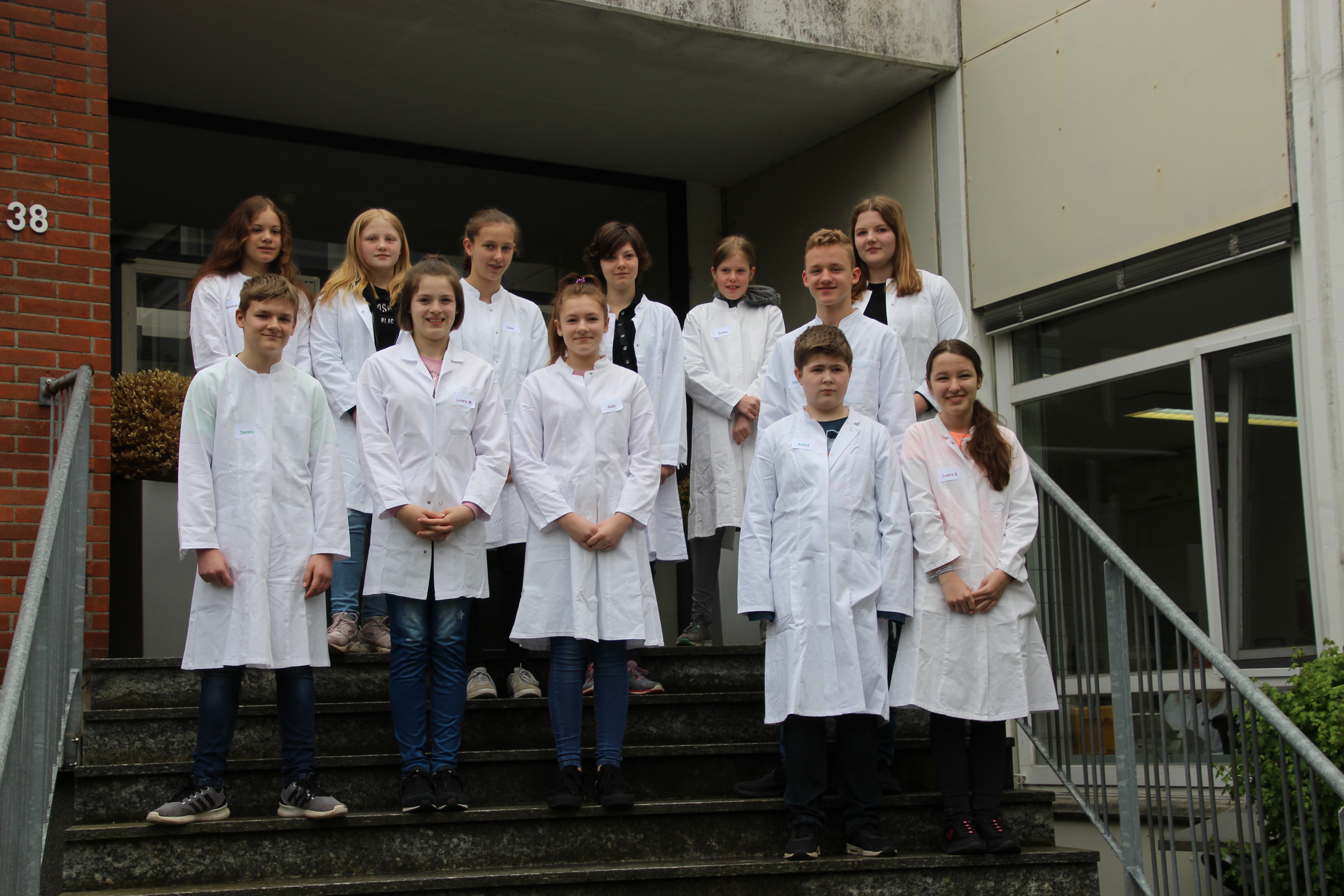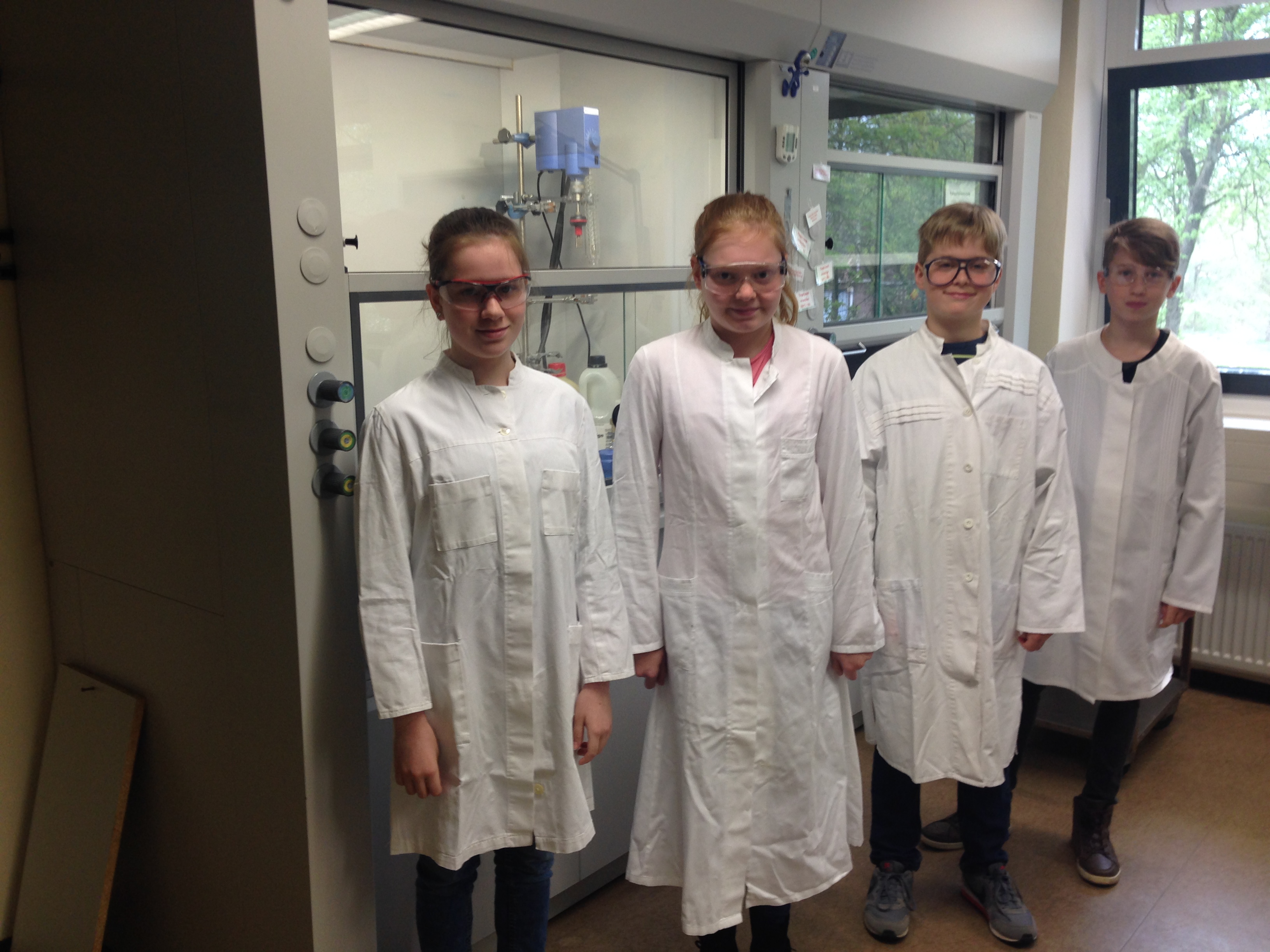 In Lüneburg waren elf Schülerinnen und Schüler der Klassen 5 bis 8 zu Gast. Zu Beginn des Tages wurden die Schüler mit Kittel und Labormaterialien ausgestattet. Nachdem sich alle in ihr neues Outfit geschmissen hatten, ging es mit einem Rundgang durch die einzelnen Labore weiter.
