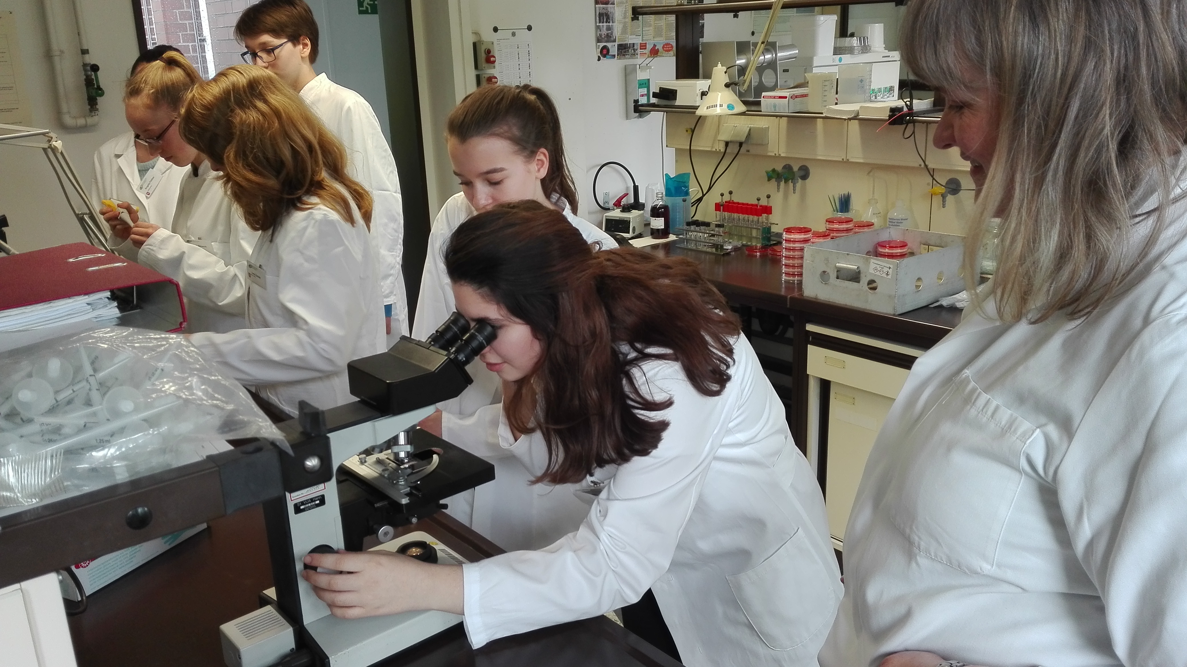 Das Lebensmittel- und Veterinärinstitut (LVI) Oldenburg - Standort Philosophenweg begrüßte zwölf Schülerinnen und Schüler zum alljährlichen Zukunftstag. Zu Beginn erhielten die Schülerinnen und Schüler eine Zusammenfassung über die Arbeit des LVI Oldenburg und das richtige Verhalten im Labor. Sie wurden mit Kitteln versorgt und von den begleitenden Auszubildenden in zwei Gruppen geteilt und durch die Labore geführt.