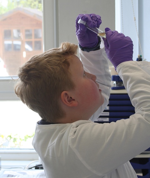 Zum Schluss lernten die Schülerinnen und Schüler mit Hilfe eines Peleusballs Lösungen zu pipettieren. Hierzu wurden verschiedene Mess- und Vollpipetten verwendet.