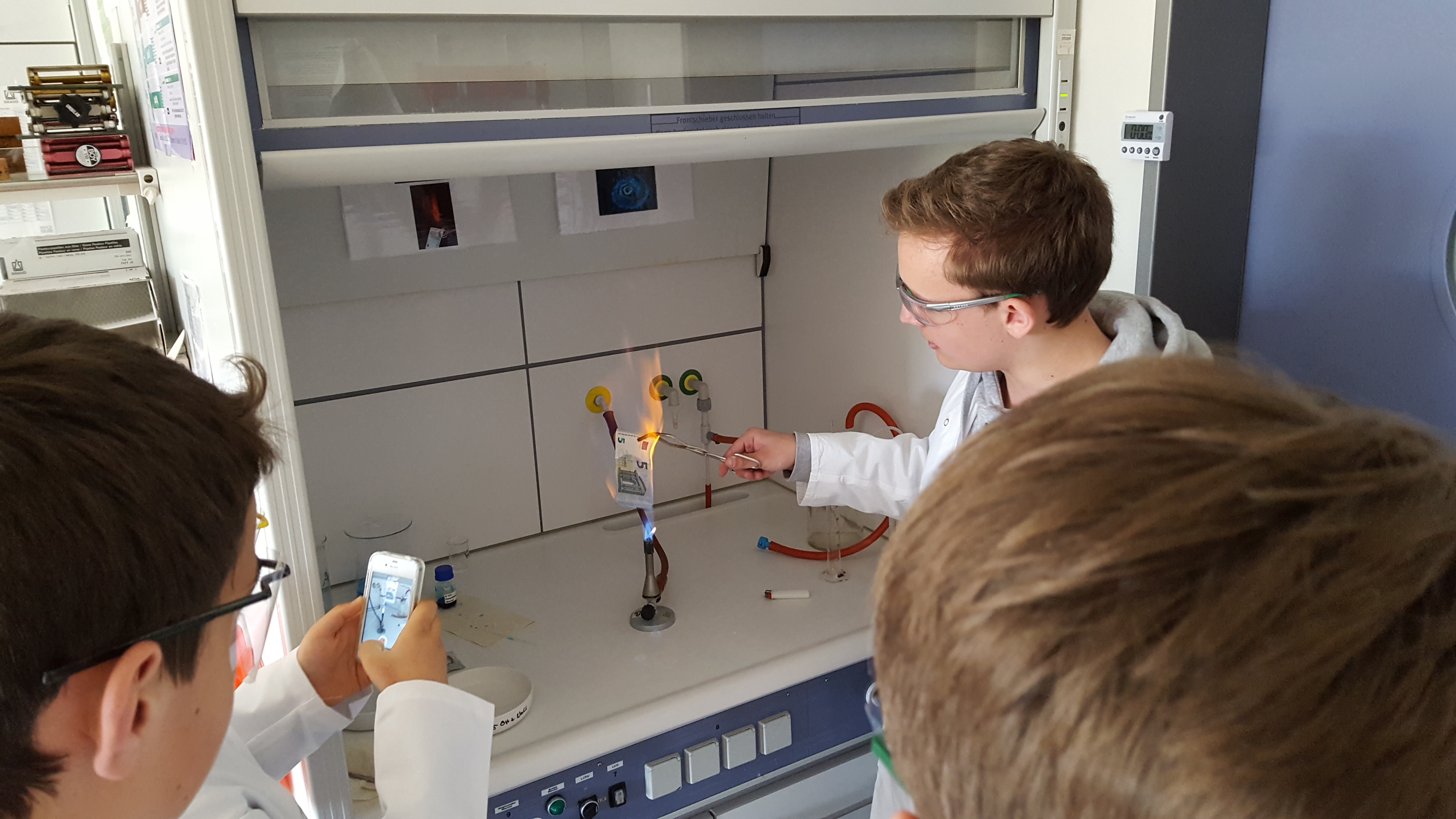 Die Gruppen wurden jeweils zeitversetzt durch die verschiedenen Abteilungen des Hauses geführt. Unter Aufsicht der Auszubildenden des Hauses konnten die Schülerinnen und Schüler einige Experimente durchgeführen, zum Beispiel Papierchromatographie, „Versilberung“ bzw. „Vergoldung“ von Kupfermünzen, explodierende Gummibärchen und scheinbare Verbrennung von Geldscheinen. Es hat geknallt, geleuchtet und war schön bunt.