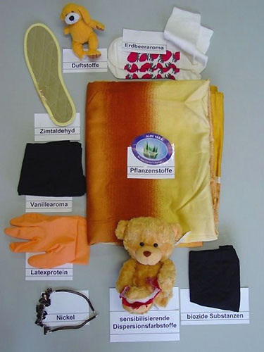 Allergien können nicht nur durch Pflanzen, Hausstaubmilben, Arzneimittel, Kosmetika oder beim Verzehr bestimmter Lebensmittel auftreten, sondern auch beim Kontakt mit Bedarfsgegenständen (Gegenstände des täglichen Gebrauchs). Diese Produkte (wie z.B. Bekleidung, Wäsche, Kosmetische Mittel, Schmuck, Spielwaren) werden im Institut für Bedarfsgegenstände Lüneburg (IfB LG) des LAVES daher auch auf die Anwesenheit sensibilisierender Inhaltsstoffe geprüft. Es werden Untersuchungen auf Chrom(VI), Formaldehyd bzw. flüchtige Stoffe, Nickel, Isothiazolinone in kosmetischen Mitteln, sensibilisierende Farbstoffe, Duftstoffe, Pflanzeninhaltsstoffe, bioziode/antimikrobielle Substanzen, materialspezifische Stoffe sowie Latexproteine durchgeführt.