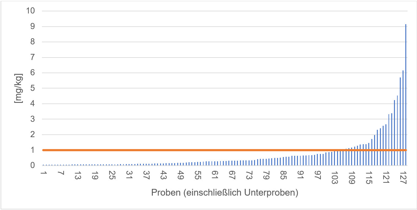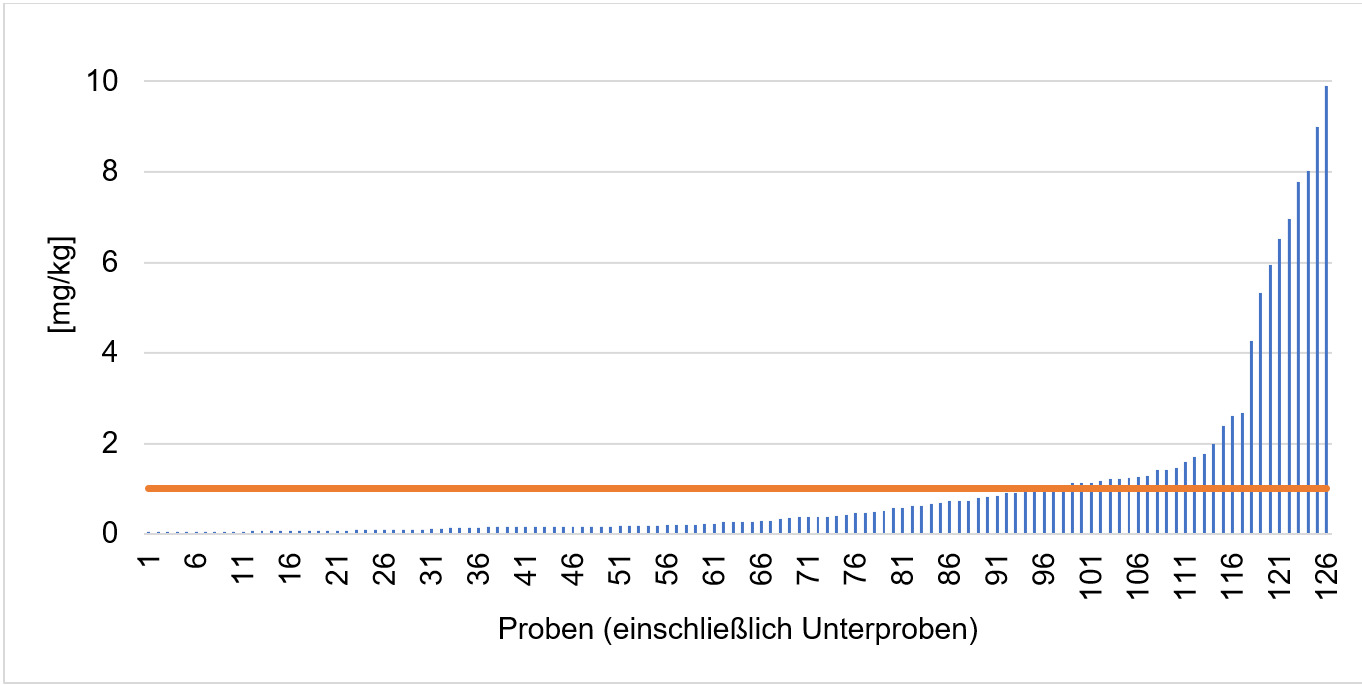 Diese unterschiedlichen Fälle stellen Gutachterinnen und Gutachter vor Schwierigkeiten bei der Bewertung von Proben. Abgesehen davon bieten einige Gesetze beziehungsweise Grenzwerte einen großen Interpretationsspielraum [6]. Bei allen Bewertungen hat der Verbraucher- und Umweltschutz oberste Priorität. Allerdings müssen Gutachten und der gegebenenfalls daraus folgende Vollzug dem rechtsstaatlichen Grundsatz der Verhältnismäßigkeit folgen.