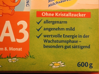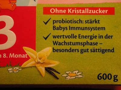 Viele Produkte zur Ernährung von Säuglingen und Kleinkindern wurden bis vor kurzem noch mit Hinweisen wie "Ohne Kristallzucker" oder "Ohne Kristallzuckerzusatz" beworben, obwohl sie laut Zutatenverzeichnis z. B. Fructose, Glucose oder Glucosesirup enthielten. Siehe Fotogalerie: