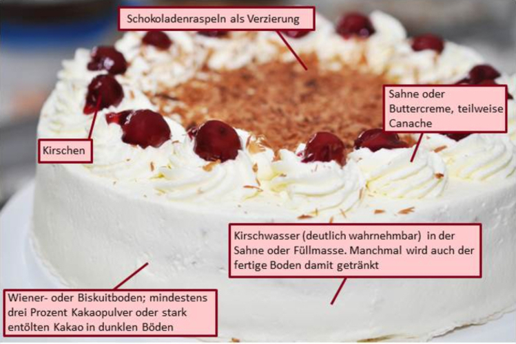 Die wesentlichen Komponenten einer Schwarzwälder Kirschtorte