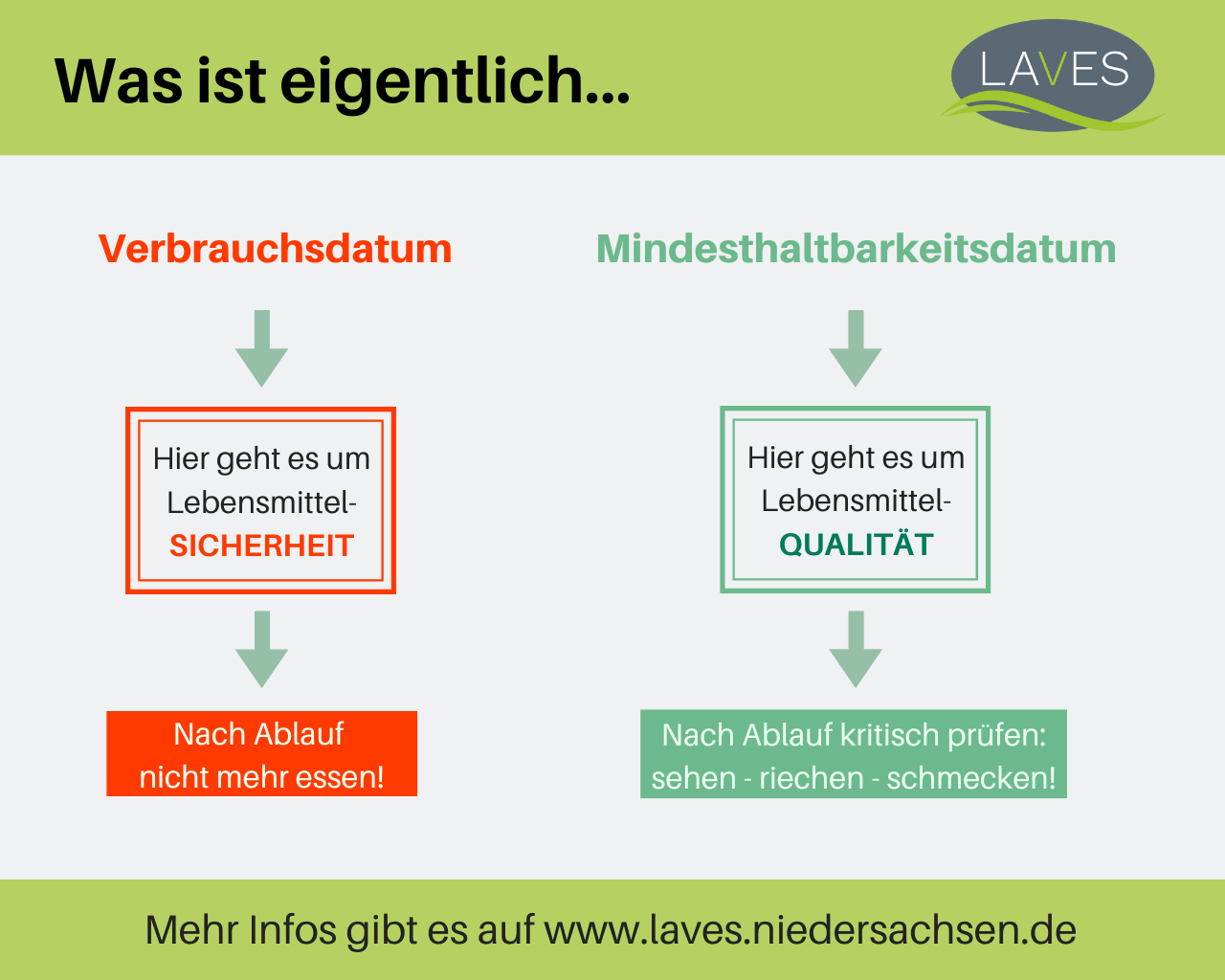 Das Mindesthaltbarkeitsdatum ist kein Ablaufdatum. Auch darüber hinaus können sich Lebensmittel in einem einwandfreien Zustand befinden und bedenkenlos verzehrt werden. Wichtig ist, dass auch andere Hinweise auf den Lebensmittelverpackungen, wie die richtige Lagertemperatur, berücksichtigt werden. Sollte das Mindesthaltbarkeitsdatum überschritten sein, kann durch Überprüfen des Aussehens, des Geruchs und des Geschmacks entschieden werden, ob das Lebensmittel noch verzehrt werden kann. Zu beachten ist weiterhin, dass sich das Mindesthaltbarkeitsdatum ausschließlich auf ungeöffnete Verpackungen bezieht. Bereits geöffnete Lebensmittel sollten daher alsbald verbraucht und auf Verderb (Aussehen, Geruch) überprüft werden, auch wenn das Mindesthaltbarkeitsdatum noch nicht überschritten wurde.