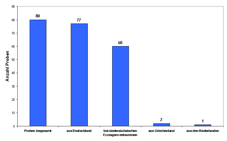 Im Lebensmittelinstitut Oldenburg des Niedersächsischen Landesamtes für Verbraucherschutz und Lebensmittelsicherheit (LAVES) wurden im 2. Quartal 2005 insgesamt 80 Spargel-Proben auf Pflanzenschutzmittelrückstände untersucht.