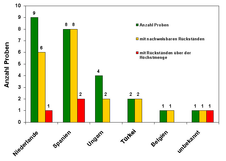 Im Lebensmittelinstitut Oldenburg des LAVES wurden im 4. Quartal 2005 insgesamt 25 Proben Gemüsepaprika auf Pflanzenschutzmittelrückstände untersucht.