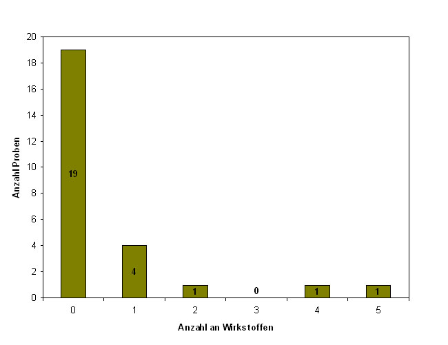Maximal konnten fünf Wirkstoffe in einer Probe nachgewiesen werden (siehe Abbildung 2).