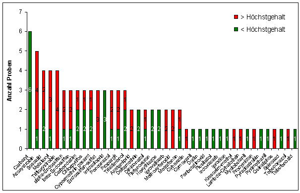 Die Ergebnisse der Rückstandsuntersuchungen sind in Abbildung 1 dargestellt.