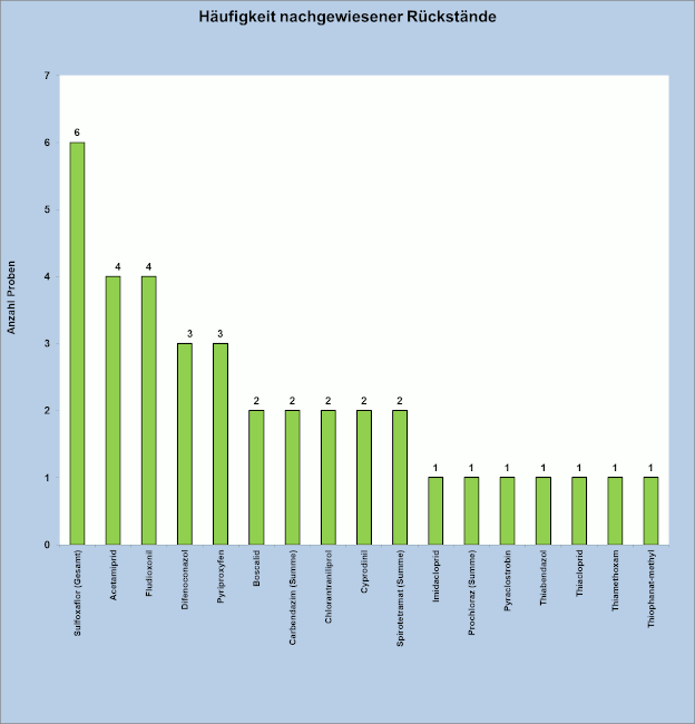 In Abbildung 3 ist die Häufigkeit der nachgewiesenen Rückstände dargestellt.
