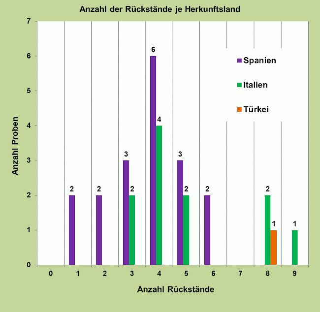 Die Ergebnisse der Rückstandsuntersuchungen sind in Abbildung eins zusammengefasst.