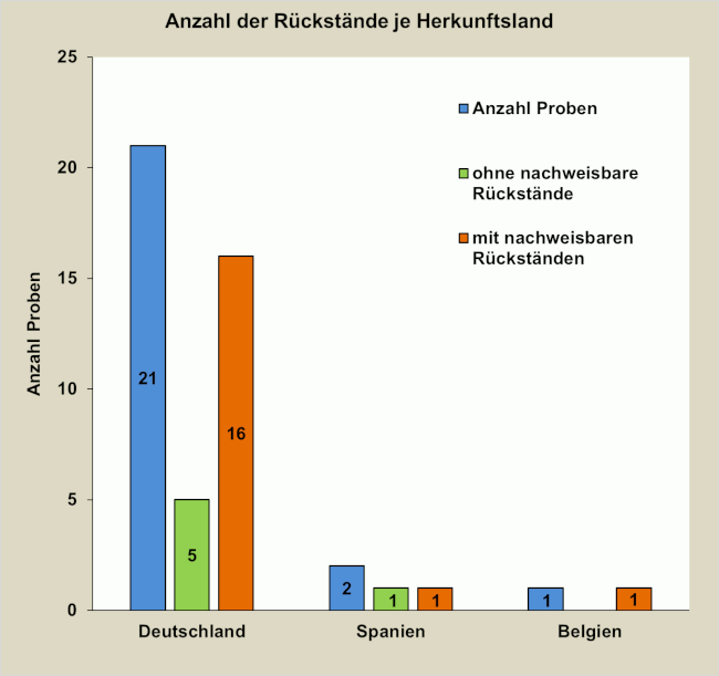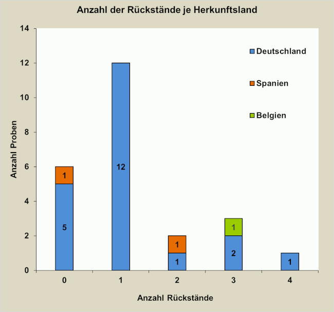 In Abbildung eins ist die Rückstandsverteilung auf die Herkunftsländer zusammengefasst.
