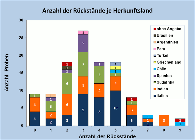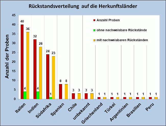 In Abbildung 1 ist die Rückstandsverteilung auf die Herkunftsländer zusammengefasst.