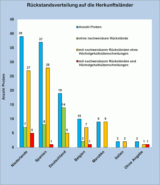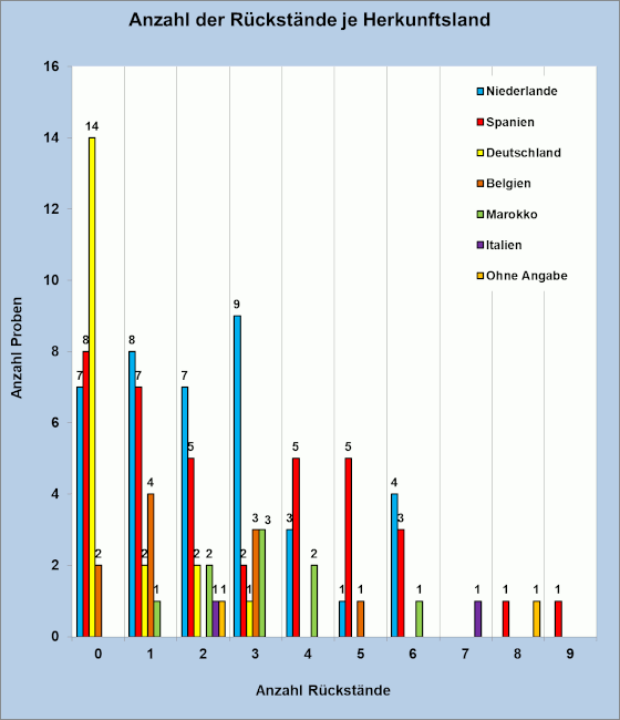 In Abbildung 1 ist die Rückstandsverteilung auf die Herkunftsländer zusammengefasst.