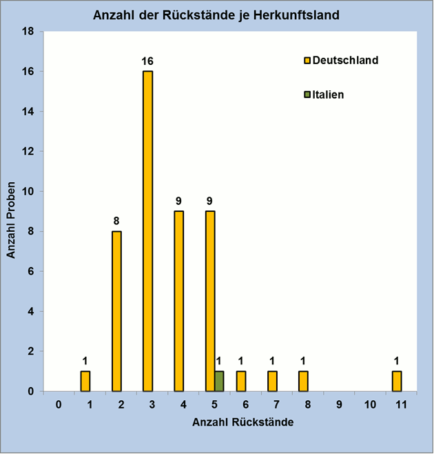 Die Verteilung der Rückstände auf die angegebenen Herkunftsländer zeigt Abbildung 2.