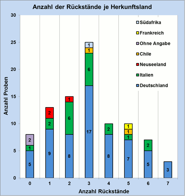 In Abbildung 1 ist die Rückstandsverteilung auf die Herkunftsländer zusammengefasst: