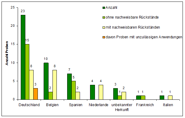 Die Ergebnisse der Rückstandsuntersuchungen sind in Abbildung 1 zusammengefasst: