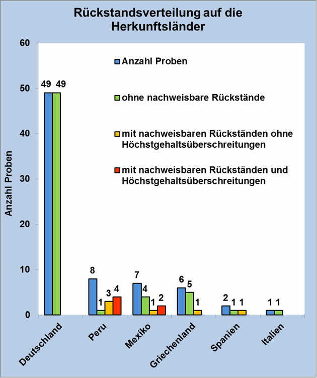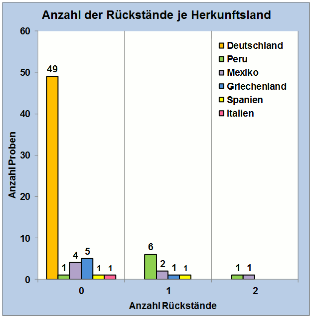 In Abbildung 1 ist die Rückstandsverteilung auf die Herkunftsländer zusammengefasst.