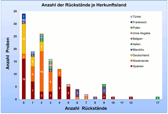 In Abbildung 1 ist die Rückstandsverteilung auf die Herkunftsländer zusammengefasst: