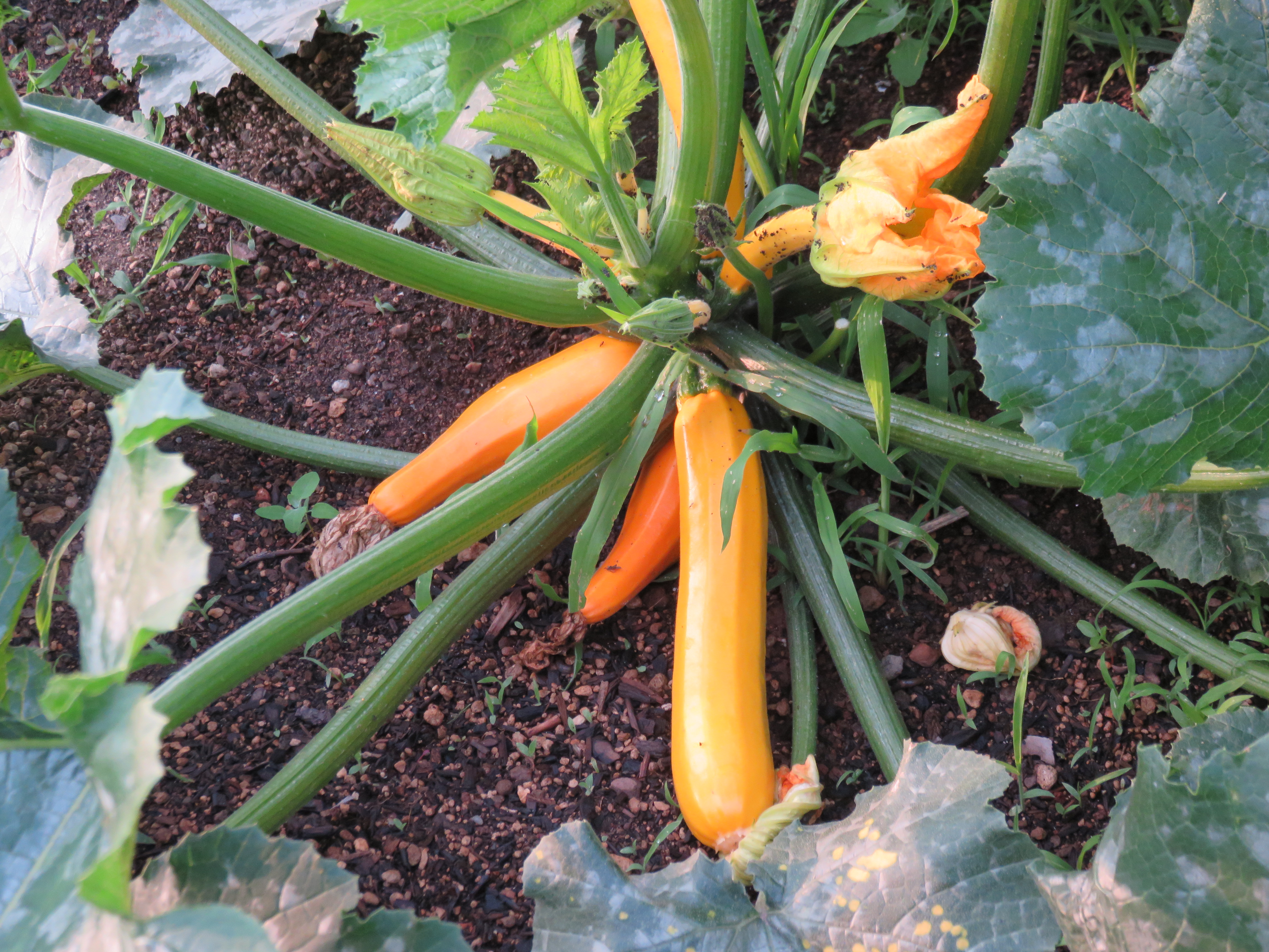 Zucchinipflanze mit grünen Zucchinifrüchten