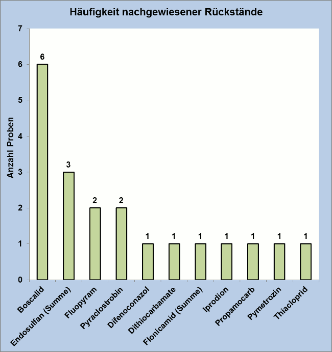 Die Ergebnisse der Rückstandsuntersuchungen sind in Abbildung 1 dargestellt.