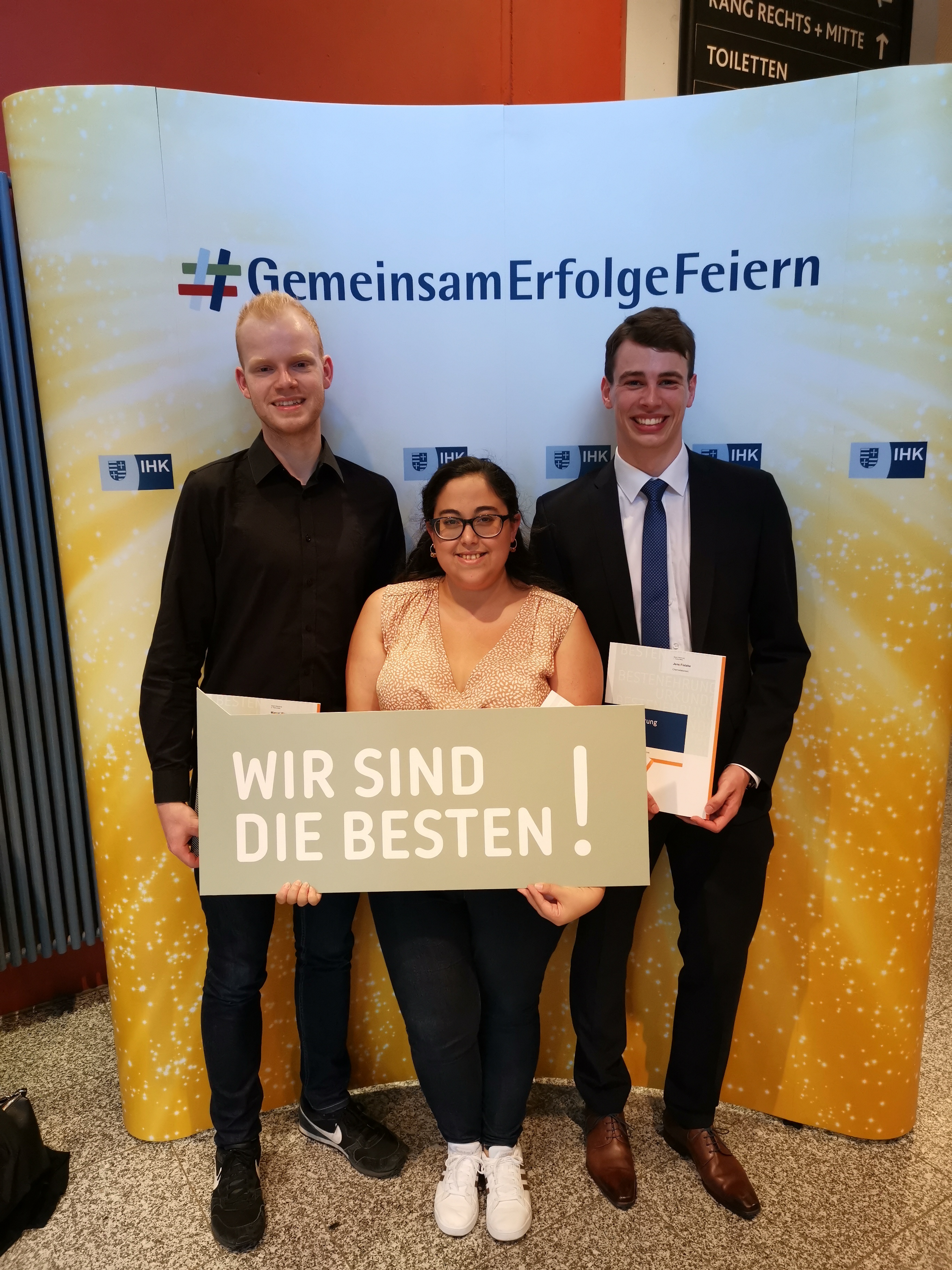 Jens Fislake, Yolanda Rodriguez Tavio und Marcel Warntjen sind für ihre Leistung von der IHK Oldenburg ausgezeichnet worden (auf dem Bild fehlt Nadja Krön)