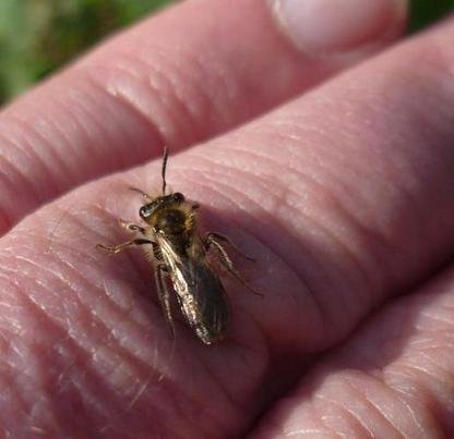 Manche Bürger und Bürgerinnen verunsichert das und sie fragen um Rat im Institut für Bienenkunde Celle. Angst und Panik sind vollkommen unbegründet, weil diese Bienen sehr friedfertig sind und nur dann überhaupt stechen, wenn man sie mit den Fingern drücken würde. Der überwiegende Teil dieser Wildbienen besitzt einen so weichen Stachel, dass dieser nicht einmal die menschliche Haut durchdringen könnte. Sie dulden sogar jeden neugierigen Beobachter direkt an ihren Nesteingängen. Diese ästhetisch schönen Wildbienen haben im Boden überwintert. Sie schlüpfen jetzt bei den wärmenden Sonnenstrahlen aus ihren Nestern heraus, die im vergangenen Jahr von deren „Müttern“ dort zeitgleich auch im Frühjahr angelegt wurden. Viele kleine Erdhäufchen zwischen dem Gras zeigen ihre Nesteingänge.