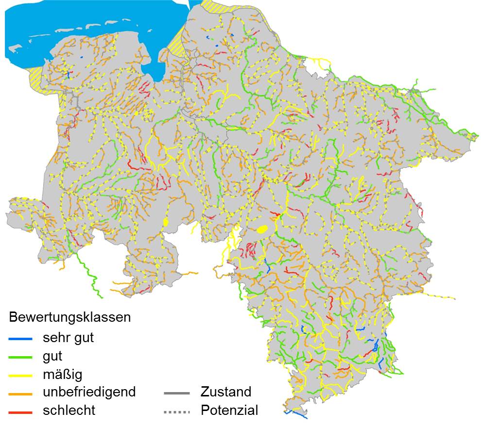 Vor dem Hintergrund der Erstellung des zweiten Bewirtschaftungsplanes zur Umsetzung der Europäischen Wasserrahmenrichtlinie (EG-WRRL) erfolgte eine Bewertung des ökologischen Zustands der Gewässer auf Ebene der sogenannten Wasserkörper. Für alle Gewässer Niedersachsens wurden durch den Niedersächsischen Landesbetrieb für Wasserwirtschaft, Küsten- und Naturschutz (NLWKN) ca. 1.720 Wasserkörper festgelegt, die jeweils einheitliche Abschnitte eines Gewässers umfassen und als wasserwirtschaftliche Bewirtschaftungseinheit dienen.
