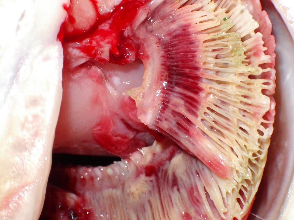 Bei Koi und Karpfen kommen zwei Viruserkrankungen mit hochgradiger Kiemensymptomatik regelmäßig vor. Hierbei handelt es sich um die Koi-Herpesvirus-Infektion und um eine Infektion mit dem Carp Edema Virus. Beide Erkrankungen haben die Kieme als Zielorgan und verursachen hochgradig Nekrosen des Kiemengewebes. Demzufolge müssen beim Vorliegen von Kiemennekrosen beide Erkrankungen als Differentialdiagnosen bedacht werden. Dennoch gibt es einige Unterschiede dieser Infektionen, die im Folgenden zusammengefasst sind: