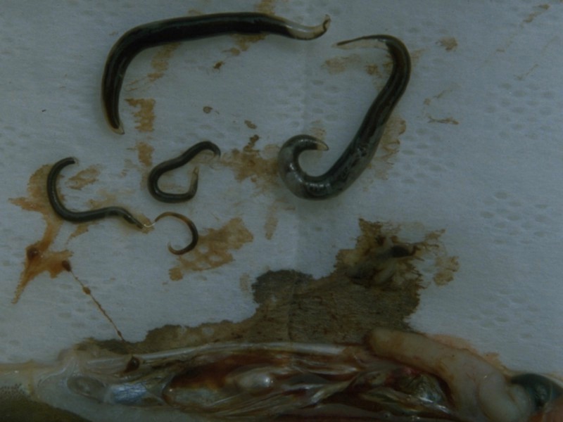• Parasitierung mit dem Schwimmblasenwurm. Der in der Schwimmblase von Aalen parasitierende Rundwurm (Nematode) der Gattung Anquillicola crassus wird in vielen wildlebenden Aalen festgestellt. Man geht davon aus, dass hierzulande etwa 70% aller Wildaale mit dem Parasit befallen sind. Bei massivem Befall kommt es zu einer Konditionsminderung. Deshalb kann vermutet werden, dass der Befall mit den Rundwürmern zu einer Beeinträchtigung der Laichwanderung und des Laichgeschehens führt.